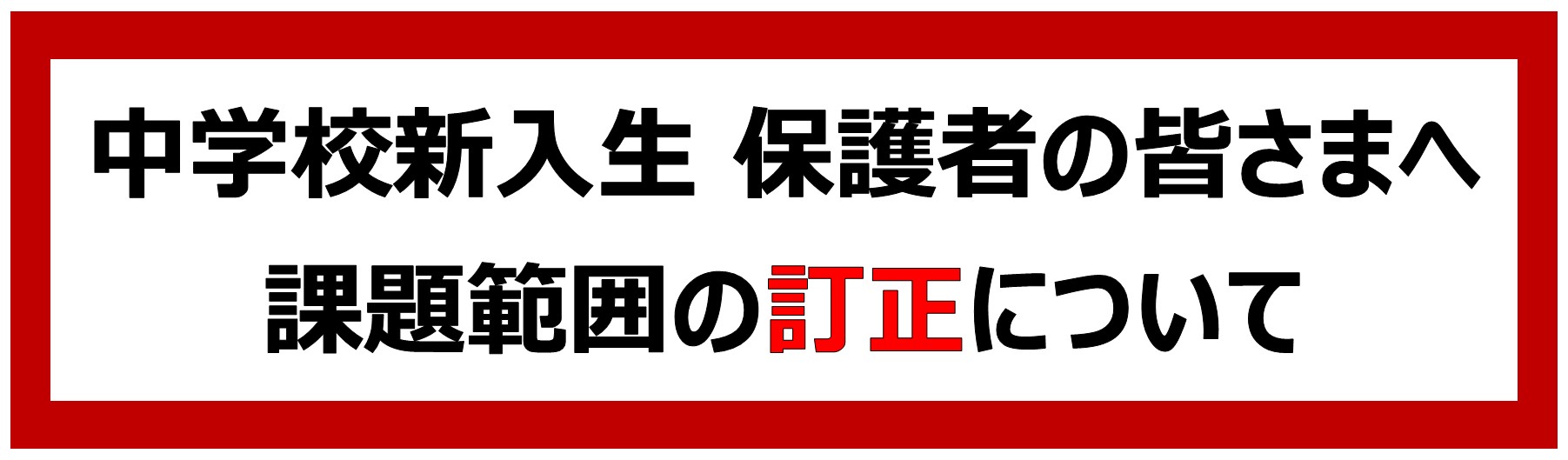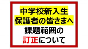 《中学校新入生 保護者の皆さまへ》 課題範囲の訂正について