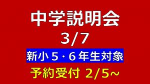 【新5年生・新6年生対象】学校説明会のお知らせ(3/7実施)