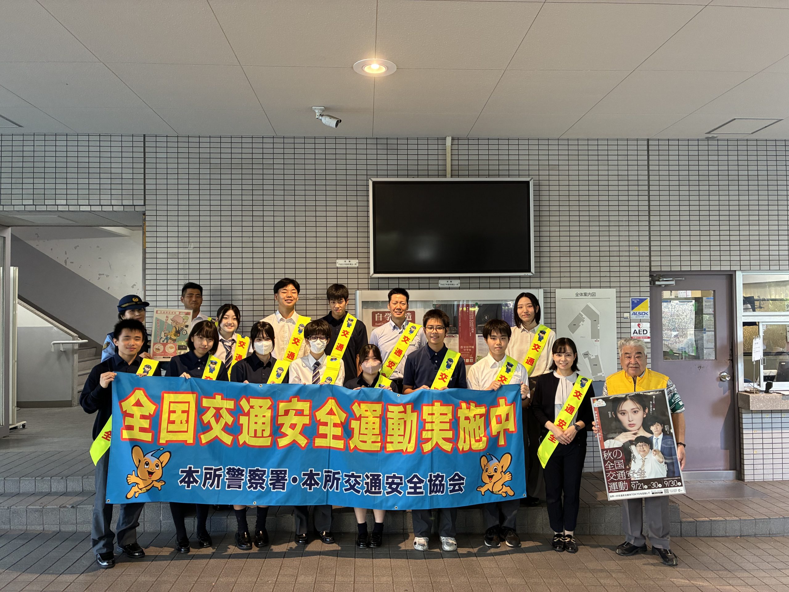 9月26日(金)の朝、本所警察署交通課の方々と一緒に秋の交通安全運動を実施しました。
