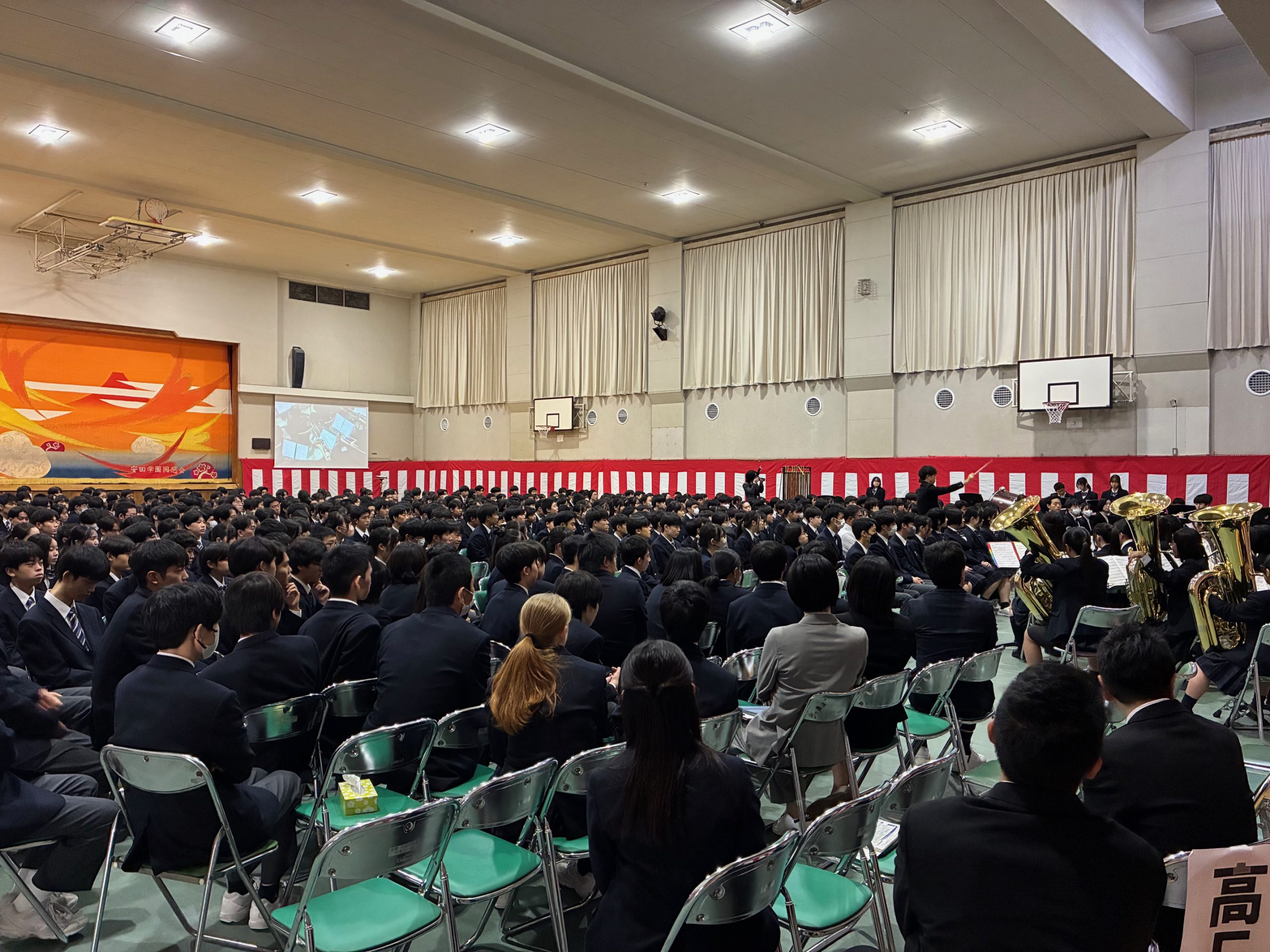 式典は理事長の祝辞をはじめ、各来賓からご言葉をいただきました。また後半は吹奏楽クラブ、ダンスクラブ、チアリーディングクラブが、102周年を記念してパフォーマンスを披露してくれ、大いに盛り上がりました!