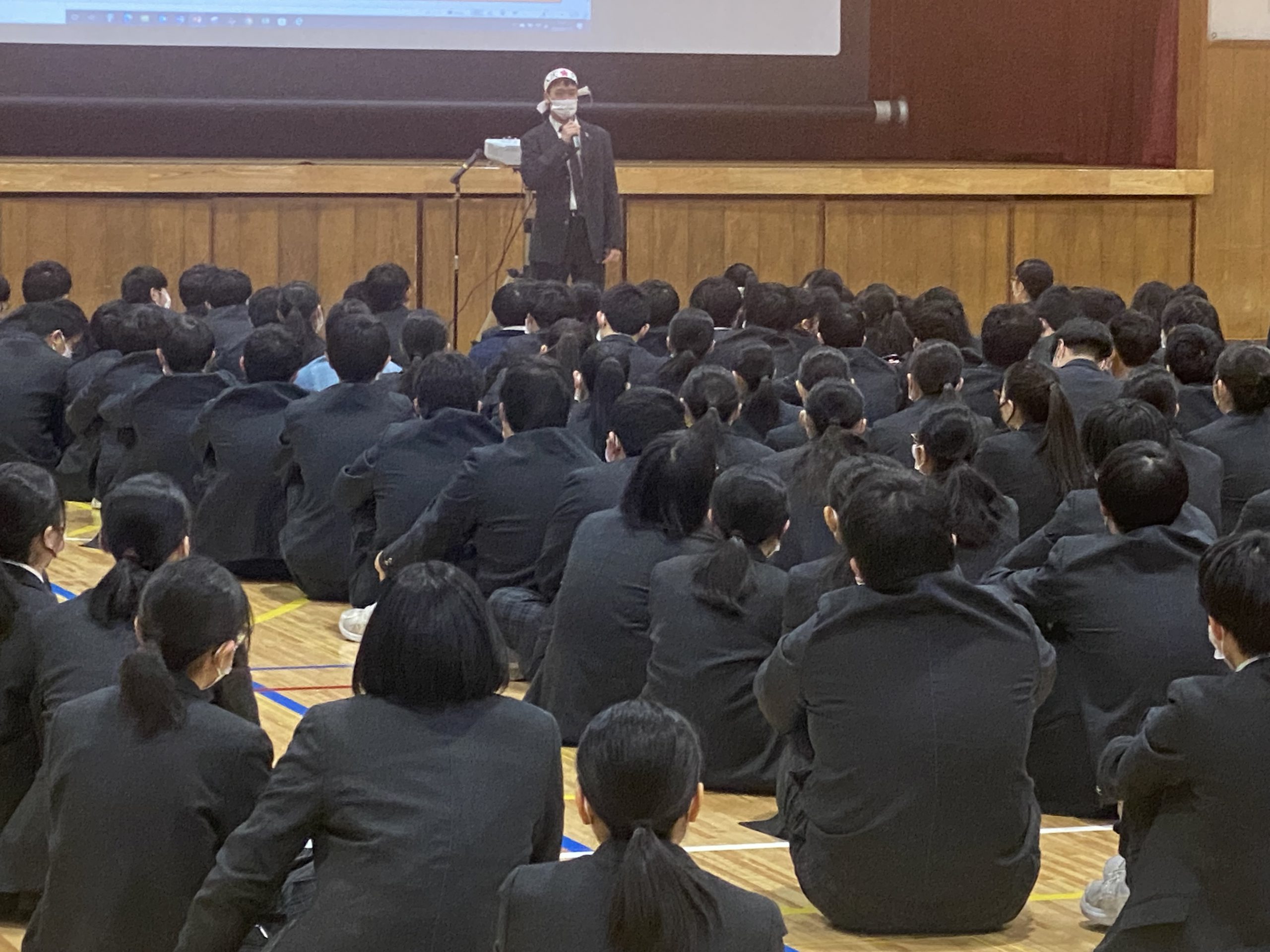 共通テストまであと1日となりました。本日、リーディングとリスニングの共通テスト模試を受験後、講堂で結団式を行いました。この会では、受験上の注意等を説明しました。